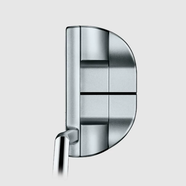 This rounded mid-mallet offers higher MOI with more weight designed into the heel and toe using precision milled 303 stainless steel and performance balanced sole weighting integrated with a 6061 aluminum sole plate. With a slightly more compact face crafted from solid stainless steel with a mid-milled pattern, this tour-inspired model also features a small slant neck for enhanced toe flow.